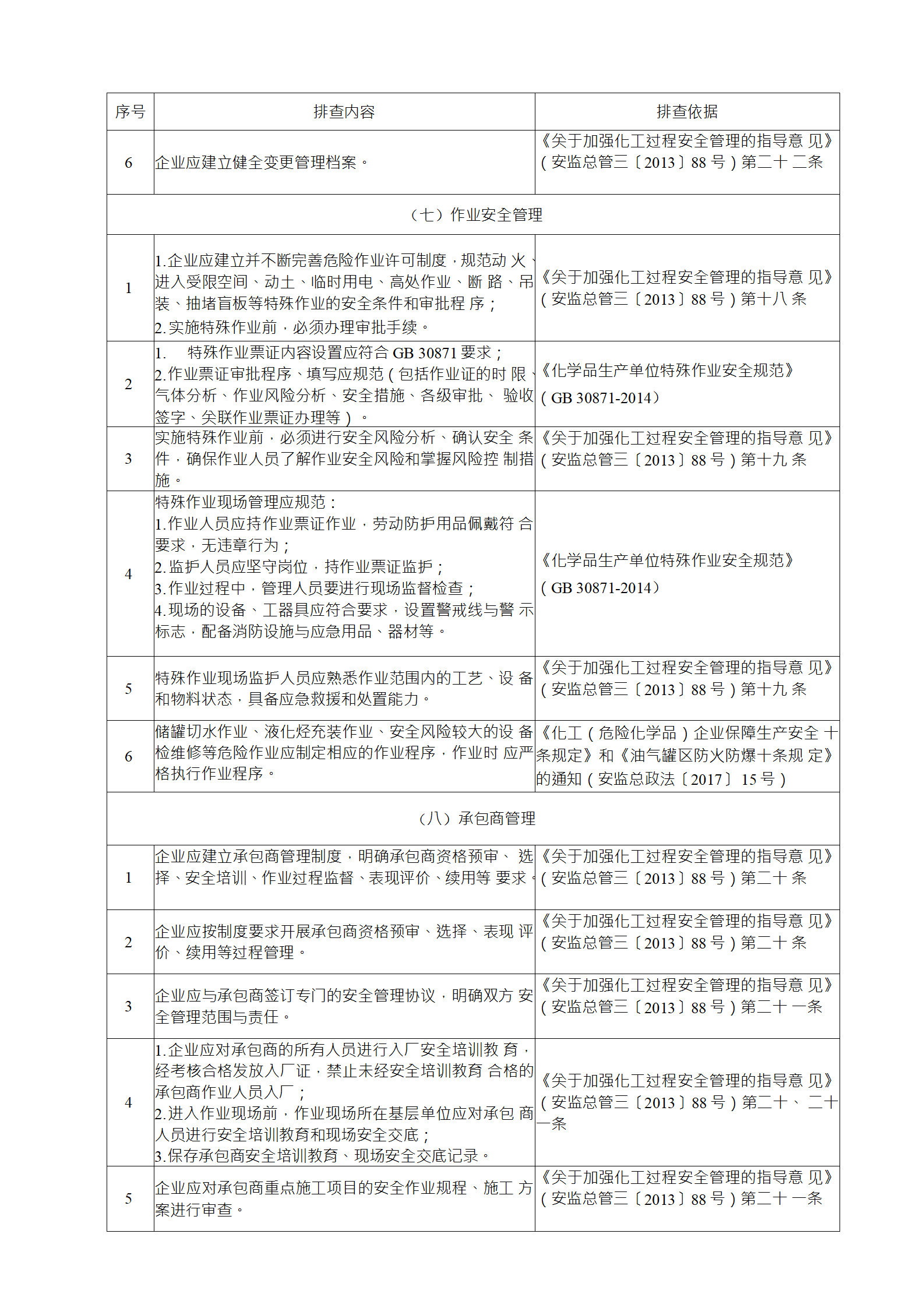 (1) 《化學(xué)品生產(chǎn)單位特殊作業(yè)安全規(guī)范》(GB 30871)規(guī)定的 動(dòng)火、進(jìn)入受限空間、盲板抽堵、高處作業(yè)、吊裝、臨時(shí)用電、動(dòng) 土、斷路等特殊作業(yè);