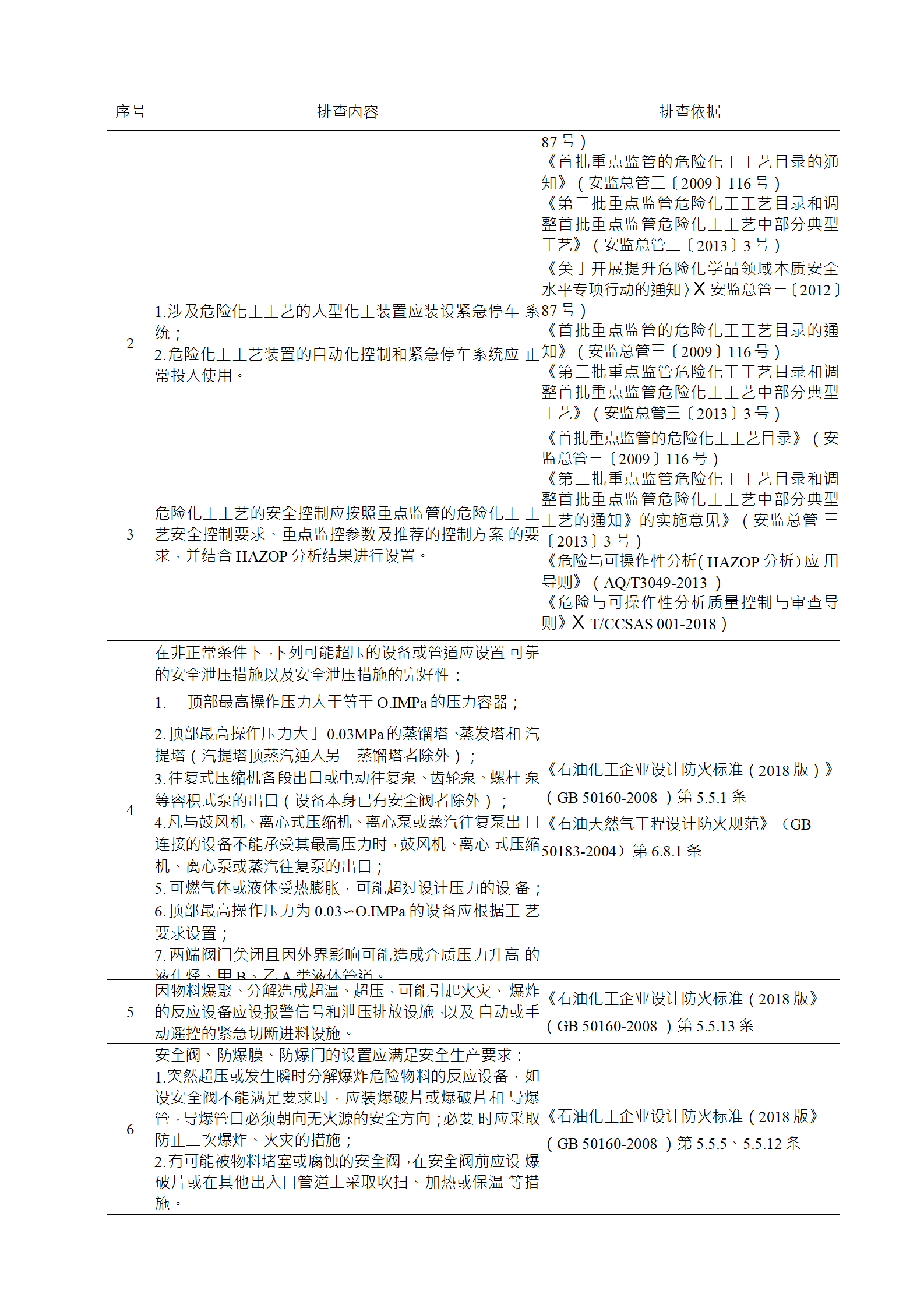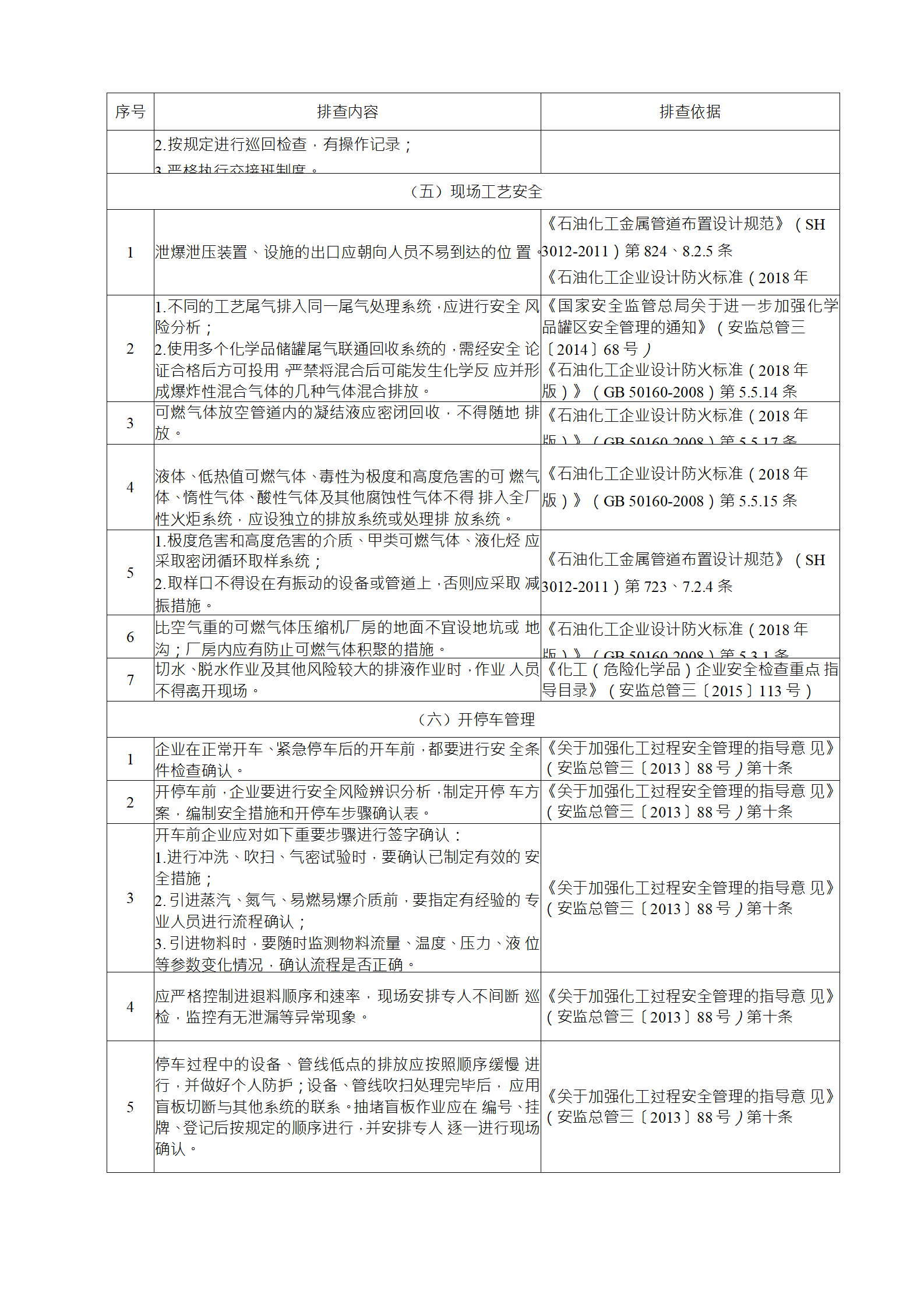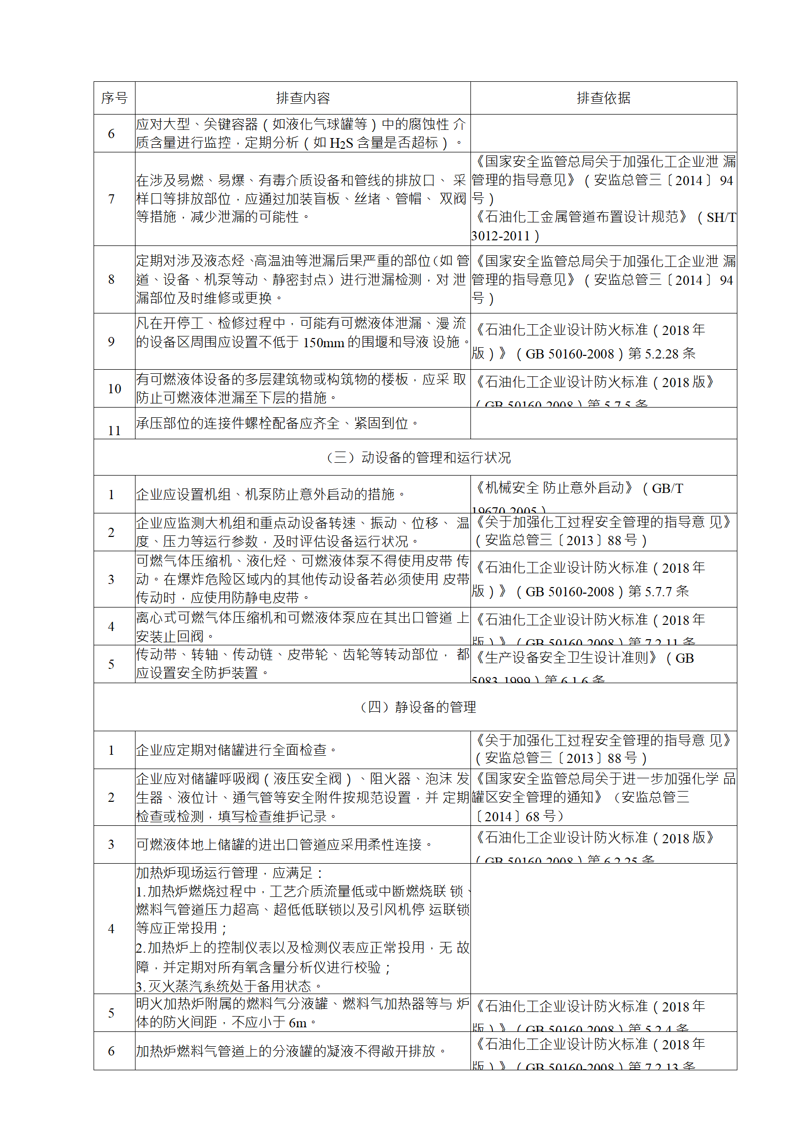 企業(yè)應(yīng)結(jié)合自身安全風(fēng)險(xiǎn)及管控水平,按照化工過程安全 管理的要求,參照各專業(yè)安全風(fēng)險(xiǎn)隱患排查表(見附件),編制 符合自身實(shí)際的安全風(fēng)險(xiǎn)隱患排查表,開展安全風(fēng)險(xiǎn)隱患排查 工作。