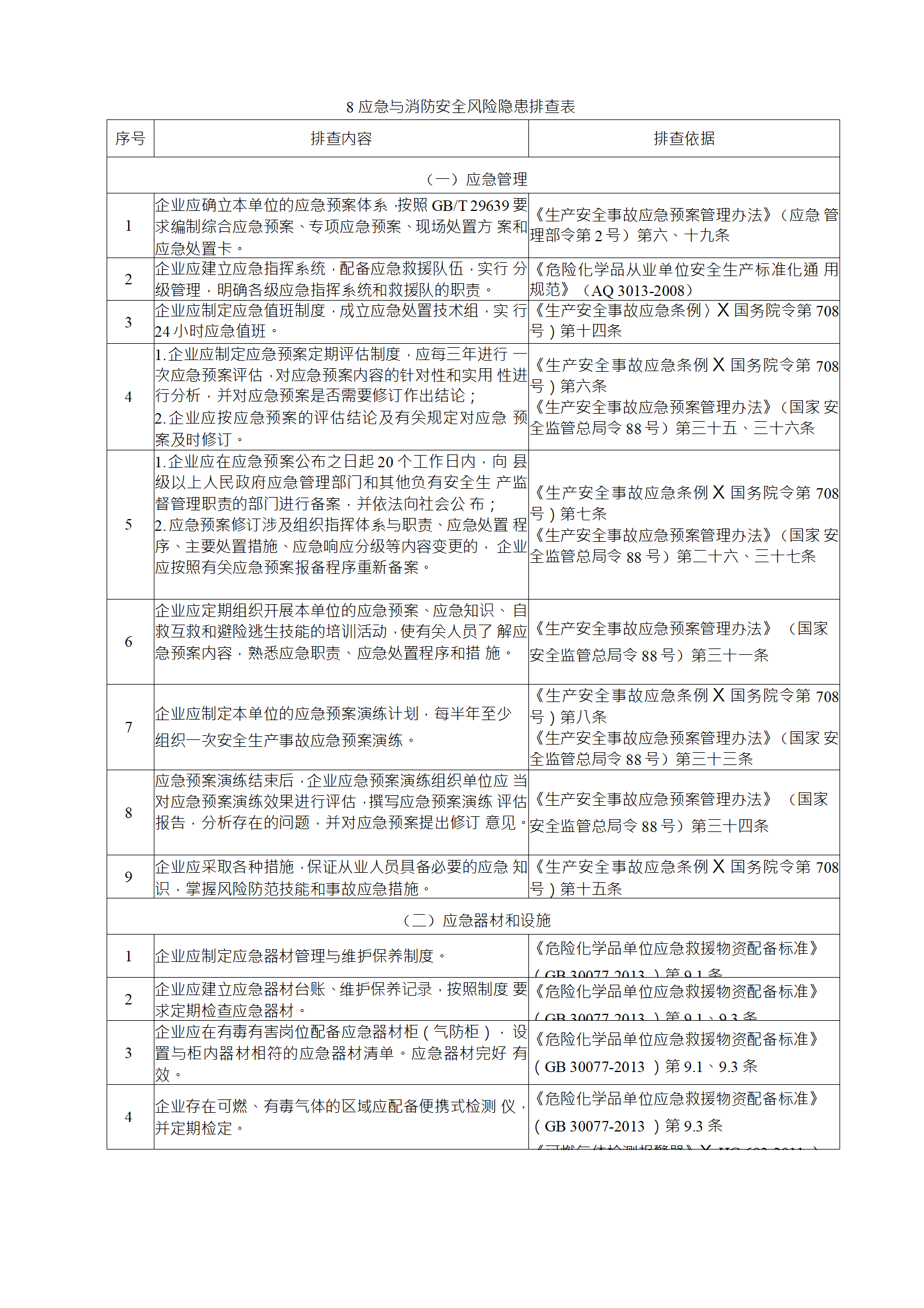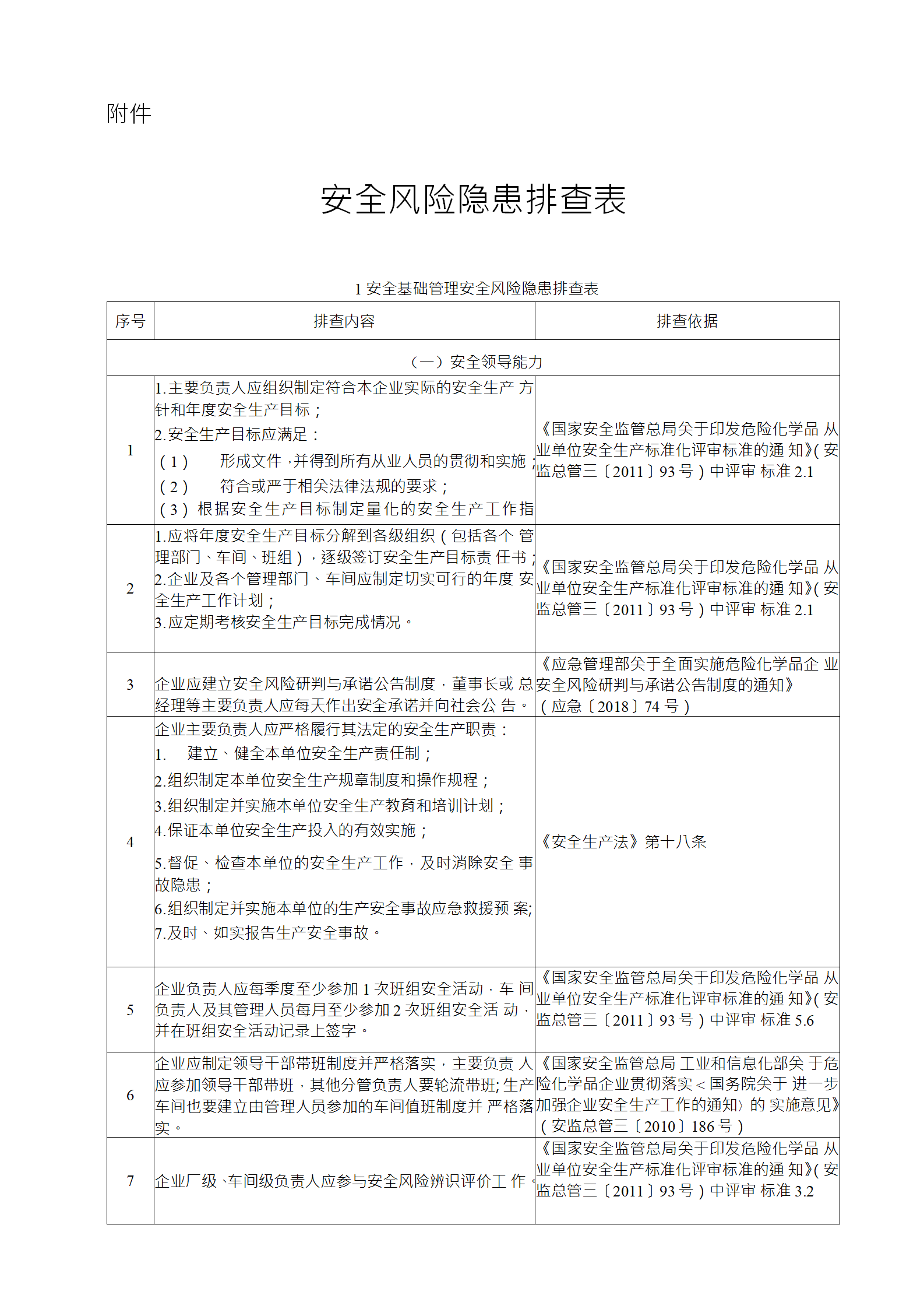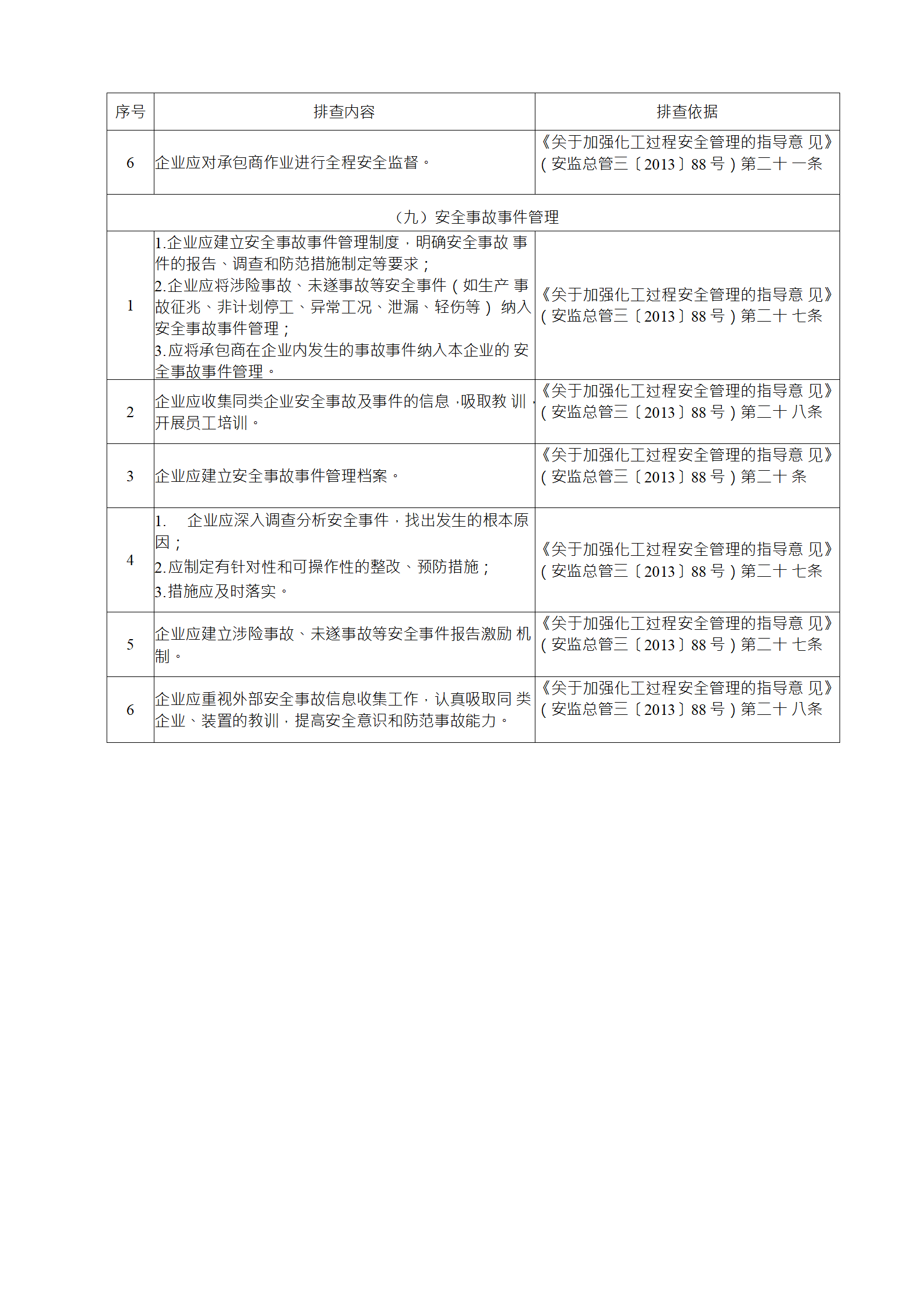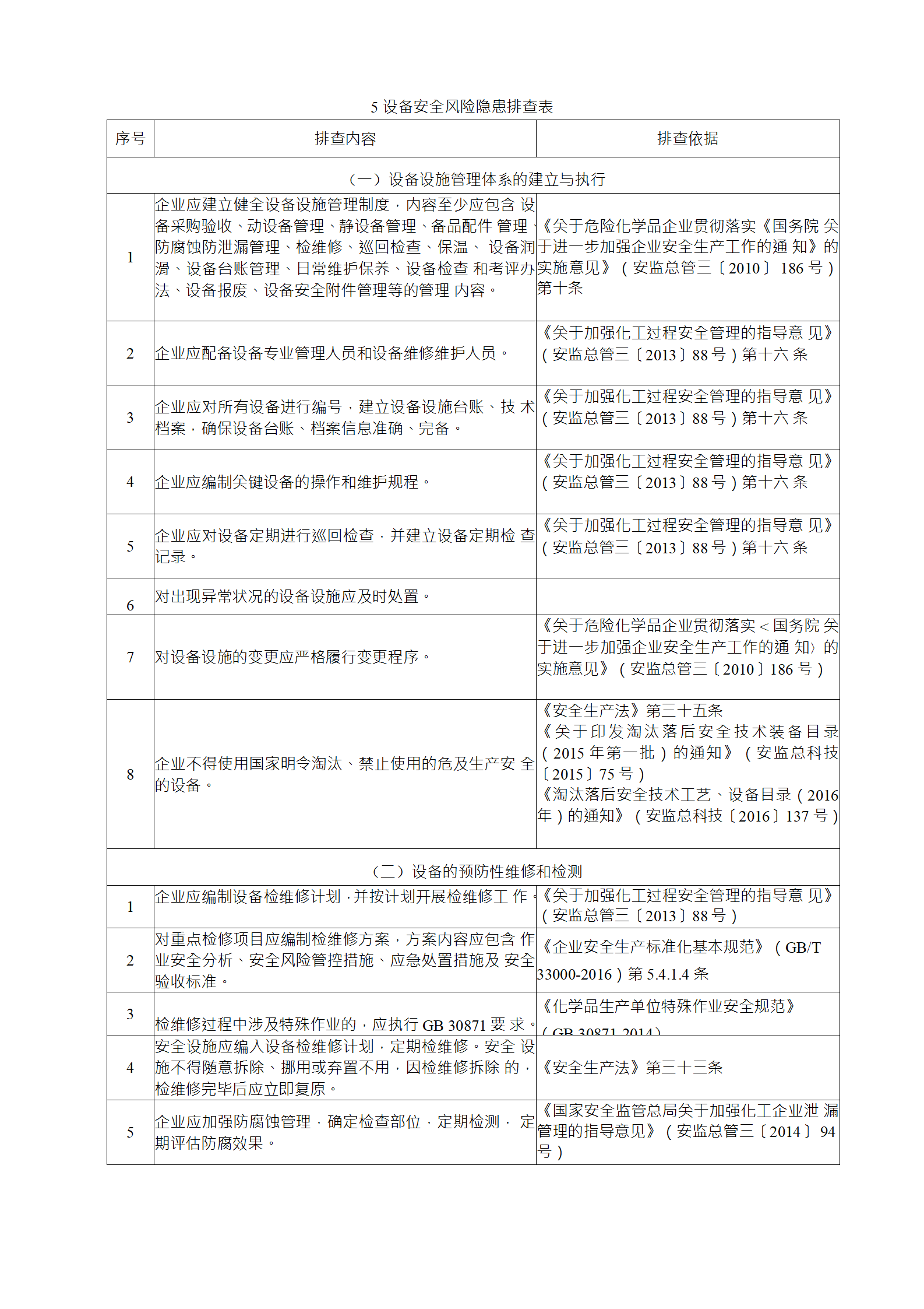 企業(yè)應(yīng)結(jié)合自身安全風(fēng)險(xiǎn)及管控水平,按照化工過程安全 管理的要求,參照各專業(yè)安全風(fēng)險(xiǎn)隱患排查表(見附件),編制 符合自身實(shí)際的安全風(fēng)險(xiǎn)隱患排查表,開展安全風(fēng)險(xiǎn)隱患排查 工作。