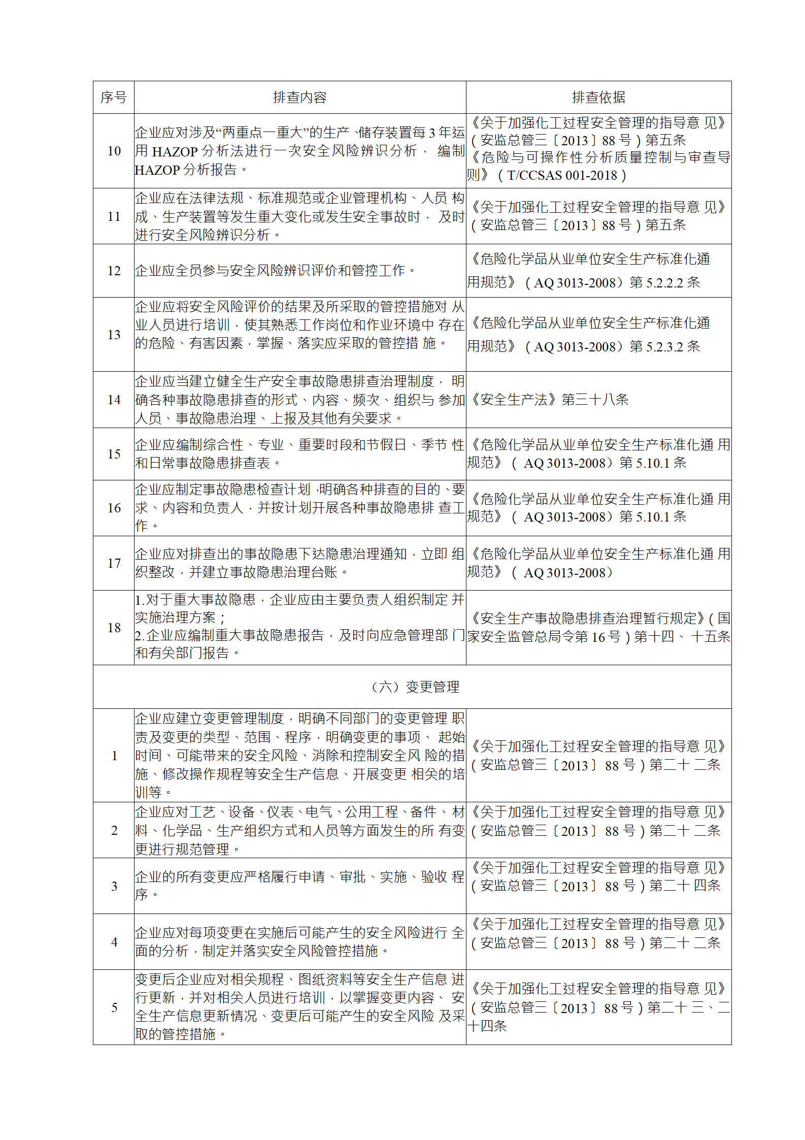 (2)綜合性排查是指以安全生產(chǎn)責(zé)任制、各項(xiàng)專業(yè)管理制 度、安全生產(chǎn)管理制度和化工過程安全管理各要素落實(shí)情況為重點(diǎn)開展的全面檢查;