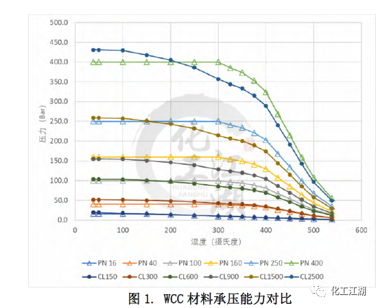 本文采用了對比冷(常溫)工作壓的方法來近似推算出與ASME標(biāo)準(zhǔn)Class壓力等級最鄰近的EN標(biāo)準(zhǔn)PN壓力等級。EN12516-1標(biāo)準(zhǔn)中列出的所有材料的冷工作壓都是相同的。而ASME B16.34標(biāo)準(zhǔn)中列出的冷工作壓和材料相關(guān),故選取了其中一種較強(qiáng)材料(C12A)的冷工作壓用于對比。 通過對比得到每個ASME標(biāo)準(zhǔn) Class壓力等級對應(yīng)的最鄰近的EN標(biāo)準(zhǔn) PN壓力等級,見表1。同時,這樣的對應(yīng)關(guān)系也和閥門設(shè)計(jì)的通用做法一致。本文的管道內(nèi)徑,最小壁厚,材料承壓能力的對比都是依照表1中的對應(yīng)關(guān)系來進(jìn)行的。 1.2 材質(zhì)承壓能力的對比 無論是ASME標(biāo)準(zhǔn)還是EN標(biāo)準(zhǔn)都列出了一些ASTM標(biāo)準(zhǔn)材料的壓力溫度等級,即材料在不同溫度下的承壓能力。本文選取了常見的閥體材料:碳鋼WCC,合金鋼 WC9和C12A進(jìn)行研究,來對比兩個標(biāo)準(zhǔn)中相同材料在標(biāo)準(zhǔn)壓力等級下的承壓能力的差別。 圖1和圖 2顯示了WCC材料的溫度壓力曲線和Class與PN的對比,可以看出: (1)對于ASME的 Class 150和EN12516-1 的PN16,當(dāng)溫度低于150攝氏度時,EN標(biāo)準(zhǔn)規(guī)定的材料承壓能力低于ASME標(biāo)準(zhǔn)規(guī)定的材料承壓能力,且隨著溫度升高,差距逐漸縮小。當(dāng)溫度高于150攝氏度時,兩個標(biāo)準(zhǔn)對相同材料的承壓能力的規(guī)定近乎相同。 (2)對于ASME的 Class 300和EN12516-1 的PN40,在整個溫度的范圍內(nèi),EN標(biāo)準(zhǔn)規(guī)定的材料承壓能力均低于ASME標(biāo)準(zhǔn)規(guī)定的材料承壓能力。當(dāng)溫度低于300攝氏度時,隨著溫度升高,差距逐漸縮小。當(dāng)溫度高于300攝氏度時,兩個標(biāo)準(zhǔn)對相同材料的承壓能力的規(guī)定差別趨于一致,約為-7%。 (3)對于ASME的 Class 900和EN12516-1 的PN160, 在整個溫度的范圍內(nèi),EN標(biāo)準(zhǔn)規(guī)定的材料承壓能力均高于ASME標(biāo)準(zhǔn)規(guī)定的材料承壓能力。當(dāng)溫度低于300攝氏度時,隨著溫度升高,差距越來越大。當(dāng)溫度高于300攝氏度時,兩個標(biāo)準(zhǔn)對相同材料的承壓能力的規(guī)定差別趨于一致,約為24%。 (4)還有一點(diǎn)值得注意的,除了PN16,其他PN壓力等級對應(yīng)的工作壓力在低于300攝氏度以下都是一樣的,而ASME等級對應(yīng)的工作壓力是隨著溫度升高持續(xù)下降的。 1.3 對閥體設(shè)計(jì)的指導(dǎo) 在實(shí)際設(shè)計(jì)過程中,無論是為了縮短新產(chǎn)品推向市場的時間,還是從產(chǎn)品標(biāo)準(zhǔn)化、成本優(yōu)化的角度去考慮,盡可能多地將已有的設(shè)計(jì)或者零部件(尤其是需要開發(fā)鑄造模具的閥體)應(yīng)用到新的產(chǎn)品中,都是設(shè)計(jì)師不可避免要考慮的問題,可以采用同一個閥體鑄件的設(shè)計(jì)來滿足ASME 標(biāo)準(zhǔn)和EN標(biāo)準(zhǔn)的要求呢?為了解答這個問題,本文選取了三個不同壓力等級-低、中、高的十二個具體實(shí)例,各項(xiàng)參數(shù)的對比結(jié)果如表3 所示。 (1)低壓ASME Class 300與 EN PN40 從表3中差別的百分?jǐn)?shù)可以看出,在兩個尺寸下,滿足ASME標(biāo)準(zhǔn)和EN 標(biāo)準(zhǔn)的管道內(nèi)徑和最小壁厚的差別,均小于5%。就是說,用同一個閥體設(shè)計(jì)來滿足兩個標(biāo)準(zhǔn)的設(shè)計(jì)要求是可以接受的。同時從圖2中可以看出,閥體常見材料在這兩個等級的承壓能力差別也較小,10%以內(nèi)。因此,兩個設(shè)計(jì)可以在類似的實(shí)際工況中應(yīng)用。 (2)中壓ASME Class 900與 EN PN160 對于中壓下尺寸為DN100和DN200的兩組設(shè)計(jì),從差別的百分?jǐn)?shù)可以看出,雖然每組中要對比的兩個設(shè)計(jì)的管道內(nèi)徑非常接近,但是所要求的最小壁厚卻相差較多,超過了20%。在這種情況下,實(shí)踐中也是可以用同一個閥體設(shè)計(jì)來滿足兩個標(biāo)準(zhǔn)的設(shè)計(jì)要求的,但是需要評估由此帶來的對最小壁厚要求較小的閥體的成本的影響。另一方面,從圖2中可以看出,閥體常見材料在這兩個等級的承壓能力差別較大,在有些溫度下差別達(dá)到20%。這種材料承壓能力上的差別和最小壁厚的差別是一致的。 (3)高壓ASME Class 2500與EN PN400 對于高壓下尺寸為DN100和DN200,閥門的管道內(nèi)徑和最小壁厚存在著巨大差別,30%-50%,故采用同一個閥體設(shè)計(jì)來滿足兩個標(biāo)準(zhǔn)的設(shè)計(jì)要求是不合理的。 還有另外一個因素需要在閥體設(shè)計(jì)時考慮,那就是閥體兩個端口之間的長度。ASME B16.34中指出可以按照ASME B16.10來確定端口對端口尺寸。EN12516-1 并未提及端口對端口尺寸,但歐標(biāo)體系中EN558規(guī)定了端口對端口的尺寸??紤]到端口對端口尺寸并非標(biāo)準(zhǔn)強(qiáng)制要求,故本文未提供ASME B16.10和EN558的區(qū)別。 (1)管道內(nèi)徑 ASME標(biāo)準(zhǔn)和EN標(biāo)準(zhǔn)在管道內(nèi)徑的主要差別在于管道內(nèi)徑是否隨著壓力等級的變化而變化。閥體設(shè)計(jì)時,管道內(nèi)徑的差異會進(jìn)一步放大閥門最小壁厚的差異。 (2)最小壁厚 兩個標(biāo)準(zhǔn)在閥門最小壁厚上的差異與壓力等級有關(guān),差別大致在6%到 26%之間。 (3)材料承壓能力 本文所研究的五種材料在兩個標(biāo)準(zhǔn)相鄰壓力等級間的對比趨