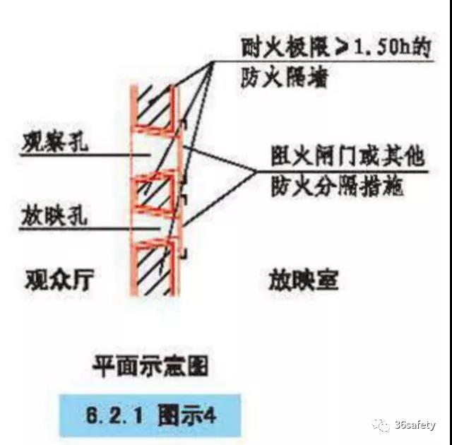 電影放映室、卷片室應(yīng)采用耐火極限不低于1.50h的防火隔墻與其他部位分隔,觀察孔和放映孔應(yīng)采取防火分隔措施。