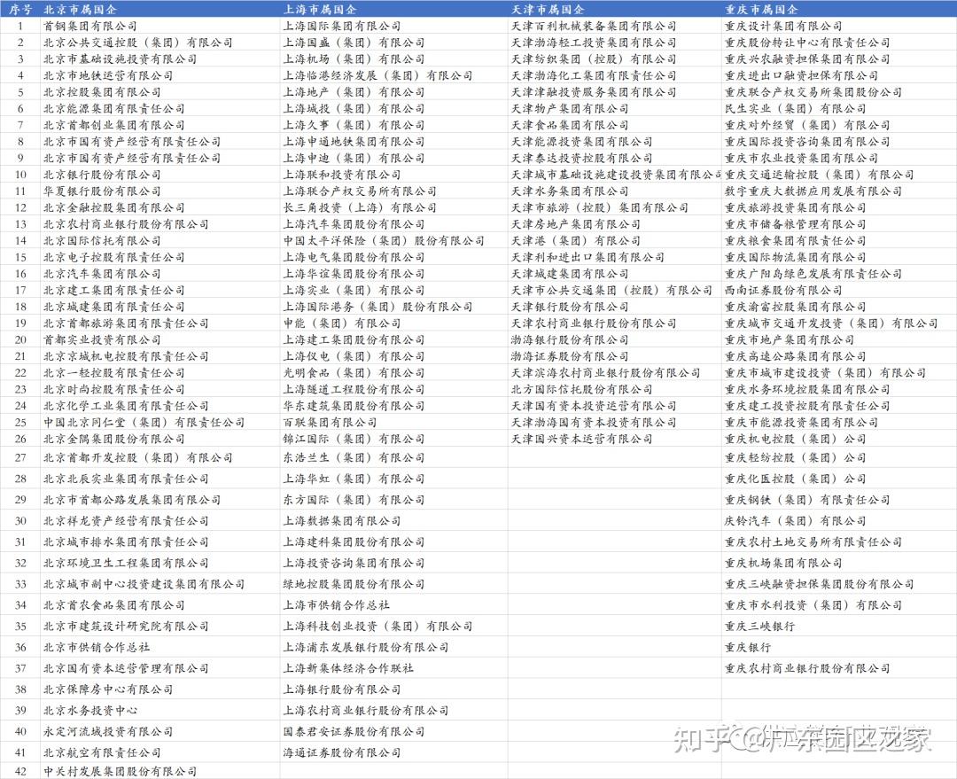 據(jù)小編統(tǒng)計,北京、上海、天津、重慶四大直轄市省屬監(jiān)管企業(yè)共146家,其中北京市42家、上海市41家、天津市26家、重慶市37家。