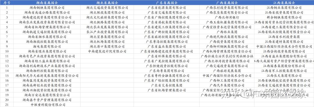 湖南、湖北、廣東、廣西及江西,這5個省份及省級行政區(qū),共設立了87家省屬國企。其中湖南省21家、廣東省18家、廣西省19家、江西省19家。