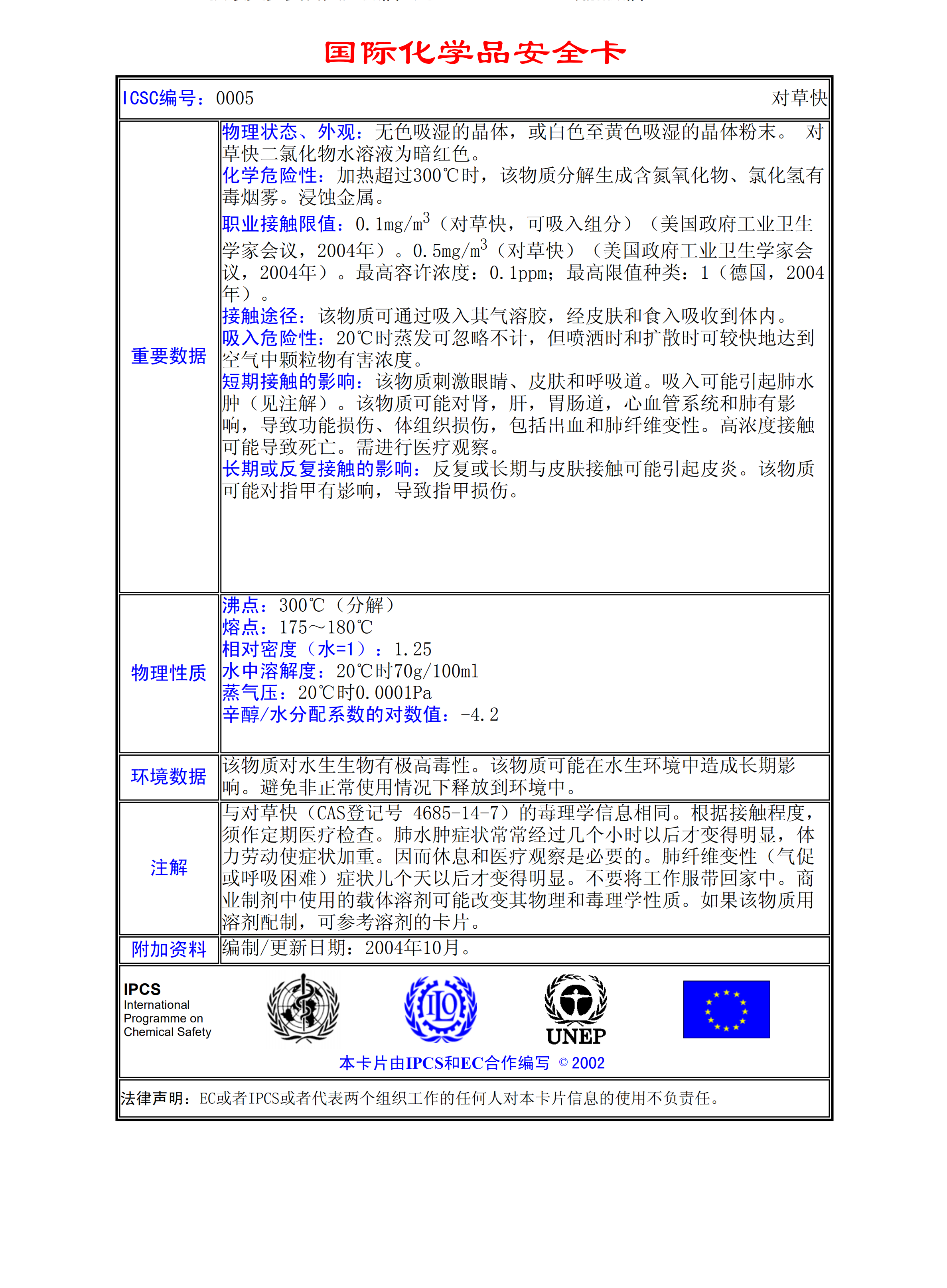 對草快二氯化物MSDS