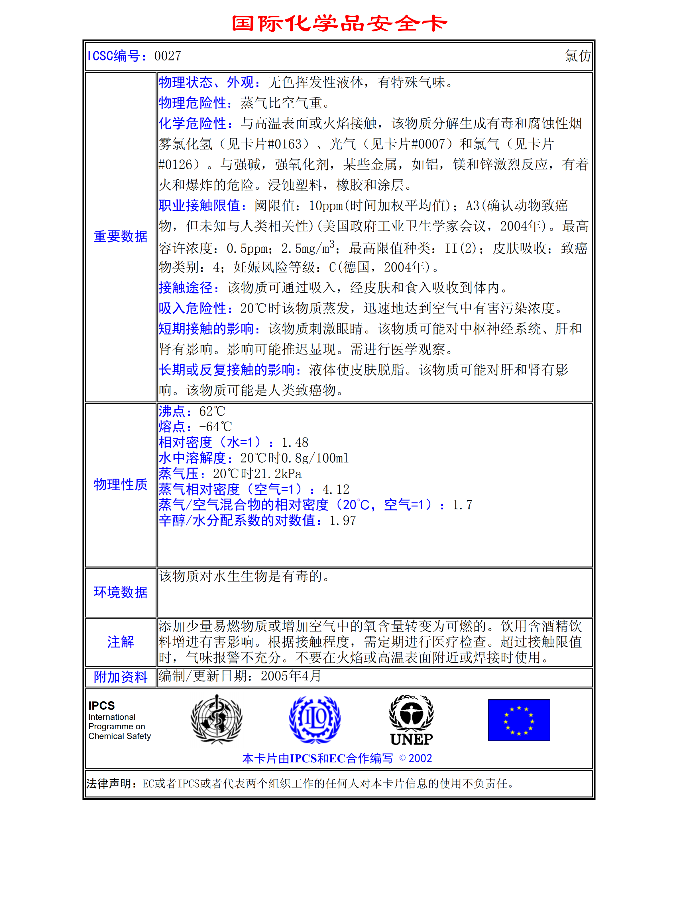 氯仿MSDS