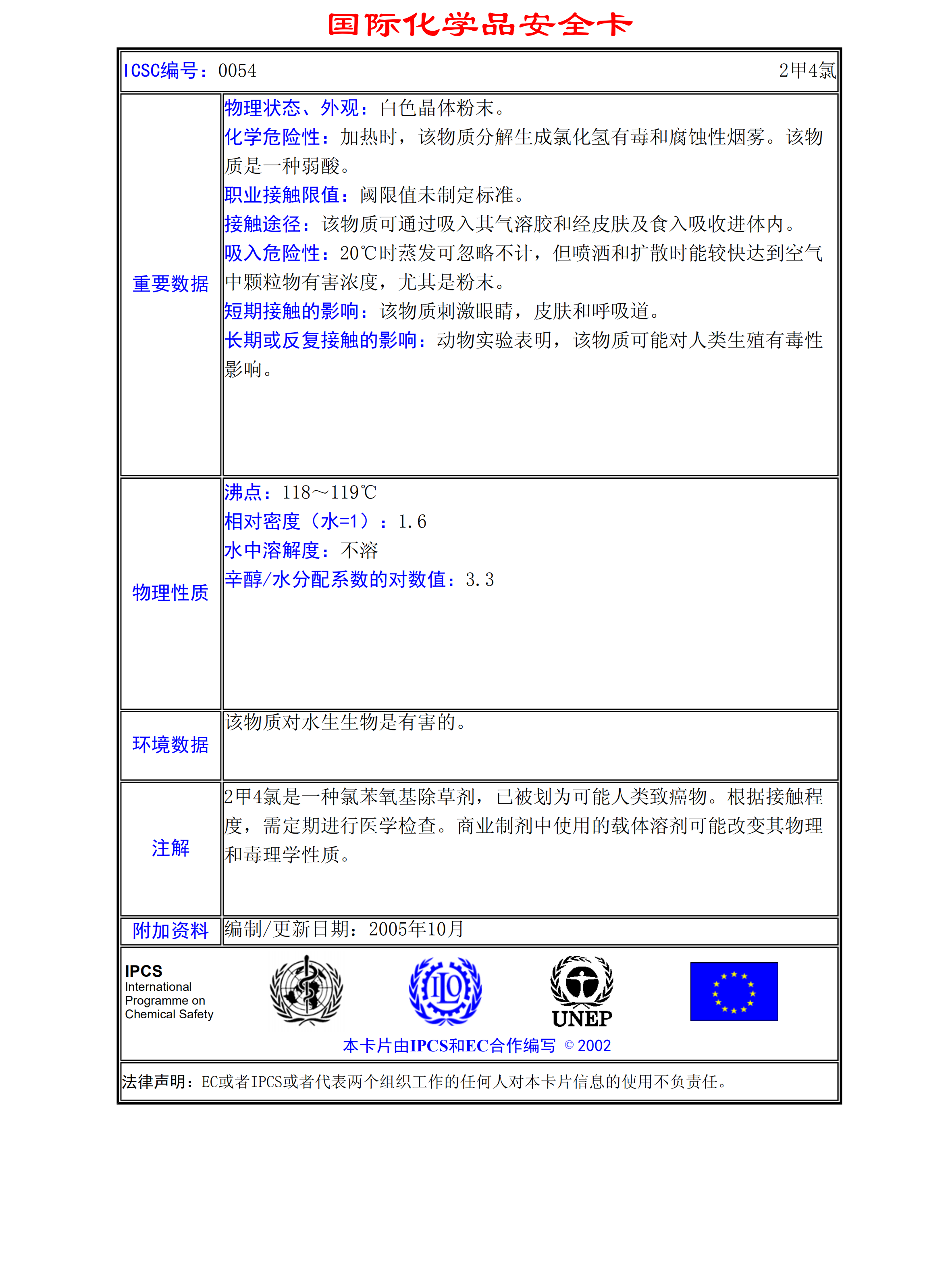 2甲4氯MSDS