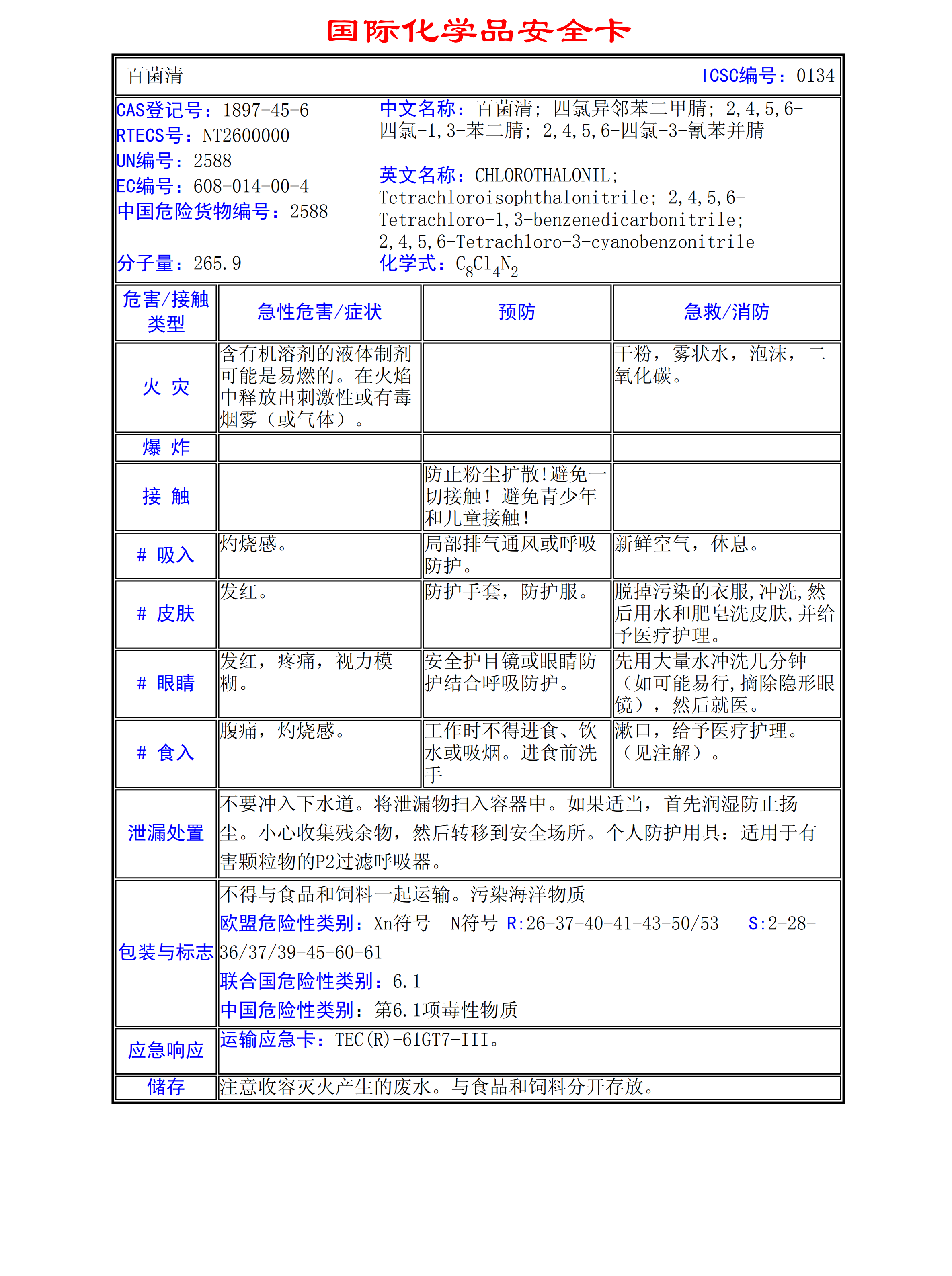 百菌清MSDS