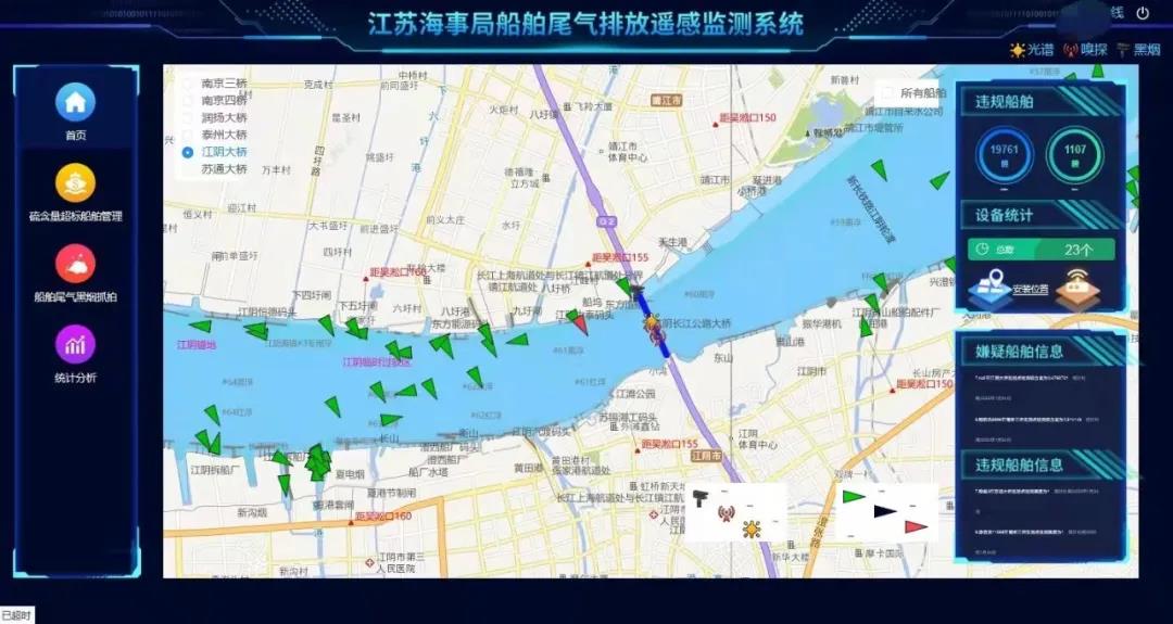 2022年1月1日,江蘇海事局船舶尾氣排放遙感監(jiān)測(cè)系統(tǒng)上線(xiàn)試運(yùn)行,在長(zhǎng)江江蘇段6座大橋建設(shè)23套船舶尾氣排放檢測(cè)設(shè)備,該系統(tǒng)覆蓋過(guò)往船舶更全、遙感監(jiān)測(cè)種類(lèi)更多、現(xiàn)場(chǎng)執(zhí)法效率更高。近日,江陰海事局查獲該系統(tǒng)運(yùn)行以來(lái)首起在航船舶燃油超標(biāo)違法行為,并對(duì)監(jiān)測(cè)系統(tǒng)中抓拍的3艘船舶尾氣明顯黑煙情況通報(bào)其船公司。1月6日,江陰海事局執(zhí)法人員在收到系統(tǒng)自動(dòng)報(bào)警后,立即組織人員對(duì)“軍**”輪開(kāi)展了船舶燃油取樣并實(shí)施硫含量快速檢測(cè),后經(jīng)專(zhuān)業(yè)機(jī)構(gòu)檢測(cè)硫含量為0.61%m/m,燃油含硫量明顯超標(biāo),該行為違反了《中華人民共和國(guó)大氣污染防治法》相關(guān)規(guī)定,江陰海事局依法對(duì)其實(shí)施了行政處罰。江陰海事局通過(guò)黑煙抓拍子系統(tǒng)報(bào)送的報(bào)警信息進(jìn)行研究分析,決定對(duì)黑煙狀況明顯的3艘船舶所屬船公司下發(fā)《船舶黑煙污染防治建議書(shū)》,要求其認(rèn)真排查船舶主機(jī)工況、燃油使用等情況,切實(shí)采取措施消除船舶黑煙,并在規(guī)定時(shí)間內(nèi)反饋整改情況。在長(zhǎng)江江陰段轄區(qū),依托江陰長(zhǎng)江大橋架設(shè)了3套采用光譜、嗅探等不同工作原理的硫含量監(jiān)測(cè)、黑煙抓拍等專(zhuān)業(yè)設(shè)備,船舶尾氣排放遙感監(jiān)測(cè)系統(tǒng)成為江陰海事局深化建設(shè)船舶污染防治“江蘇模式”江陰樣板區(qū)、精準(zhǔn)防治船舶尾氣污染、助力打贏藍(lán)天保衛(wèi)戰(zhàn)的科技利器。